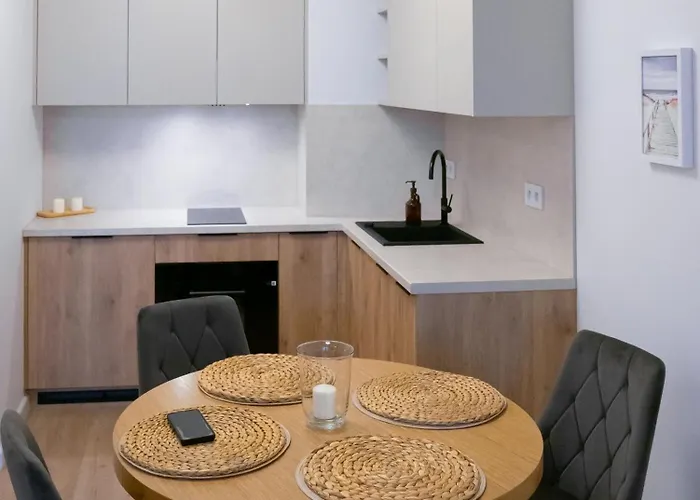 Los huéspedes de este apartamento pueden disfrutar de instalaciones de autoservicio, incluyendo una cocina completa y un comedor al aire libre. El restaurante Tawerna Boma ofrece platos de la cocina polaca y está a 400 metros del apartamento. La parada de autobús PCK está situada a unos minutos a pie de esta propiedad.